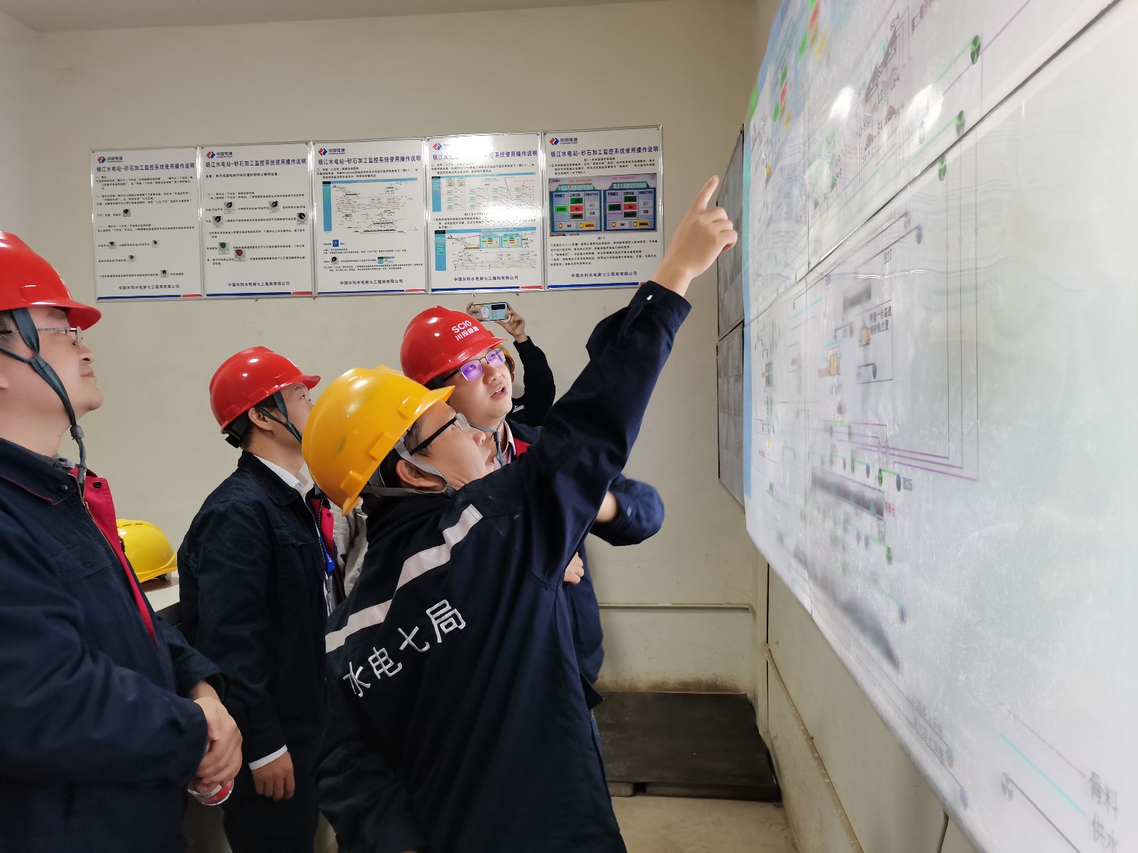在水電七局項目部會議室,水電七局總工程師韋仕鴻詳細介紹了銀江水電站砂石加工系統及混凝土生產系統的工藝流程。銀江水電站位于主城區,環保要求極高,銀江水電站的砂石加工系統和混凝土生產系統的所有設備、皮帶機及料倉均為全封閉式,不僅環保而且美觀。