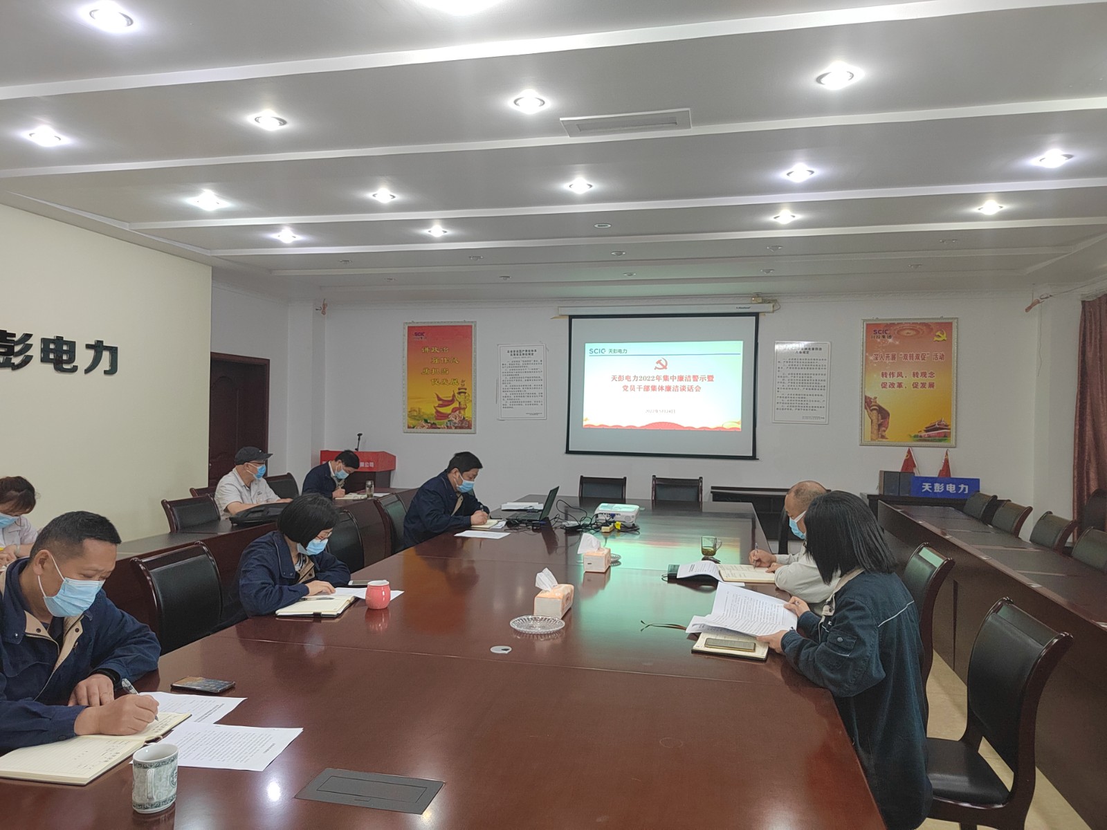 為進一步加強公司黨風廉政建設工作,落實全面從嚴治黨要求,筑牢領導干部廉潔自律防線,天彭電力在公司二樓會議室召開2022年集中廉潔警示教育暨黨員干部集體廉潔談話會。公司領導班子成員、各部門(車間)負責人,關鍵崗位人員參加會議,會議由黨總支委員、紀檢小組長、工會負責人汪曉力主持。