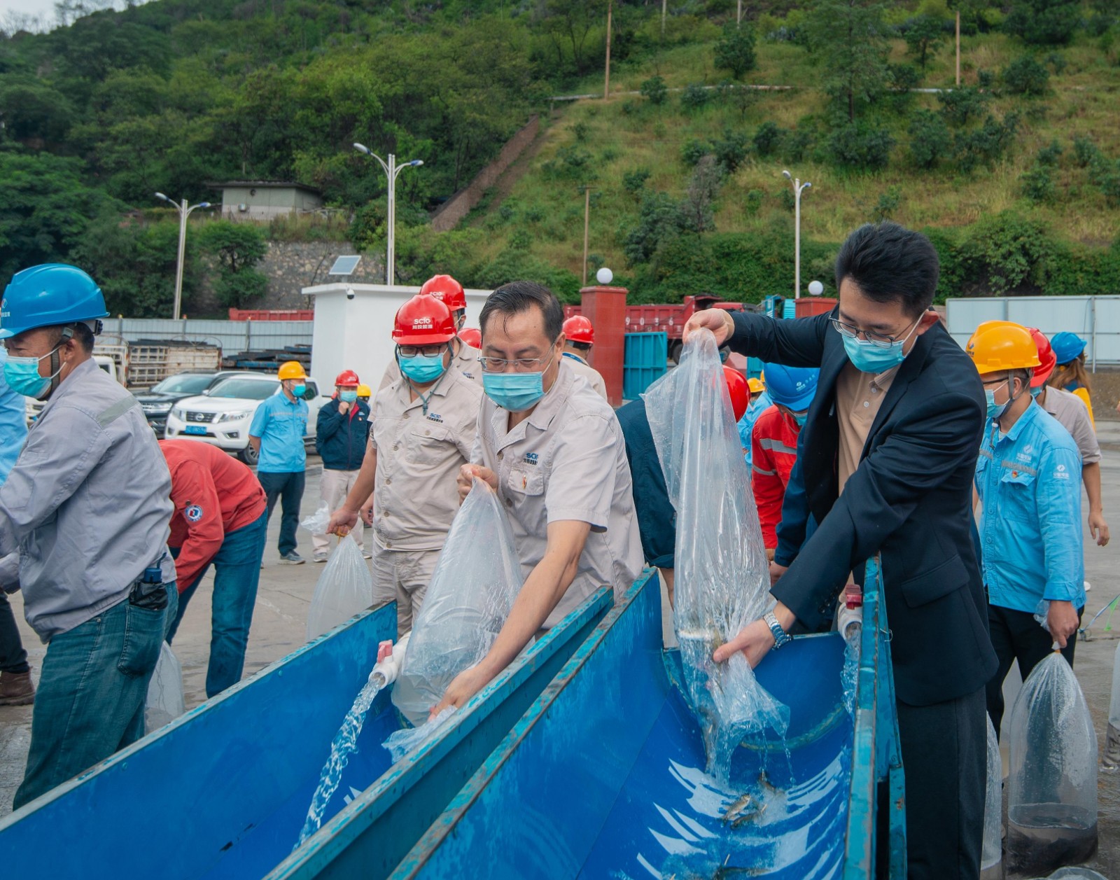 川投能源副總經(jīng)理、攀水電公司黨總支書記、董事長、攀新能源公司董事長徐孝剛宣布放流開始后,帶頭放出了銀江水電站第一尾魚苗,各參加活動(dòng)人員在工作人員的指引下,有序放流了巖原鯉、白甲魚、長薄鰍及圓口銅魚4種魚苗,共計(jì)15.6萬尾,它們都屬于金沙江中游珍稀魚類。同時(shí)魚類增殖專家現(xiàn)場(chǎng)向參加活動(dòng)人員進(jìn)行了放流魚類知識(shí)科普,介紹了放流魚類的特點(diǎn)、生活習(xí)性、自然水域種群情況、人工繁殖等情況。