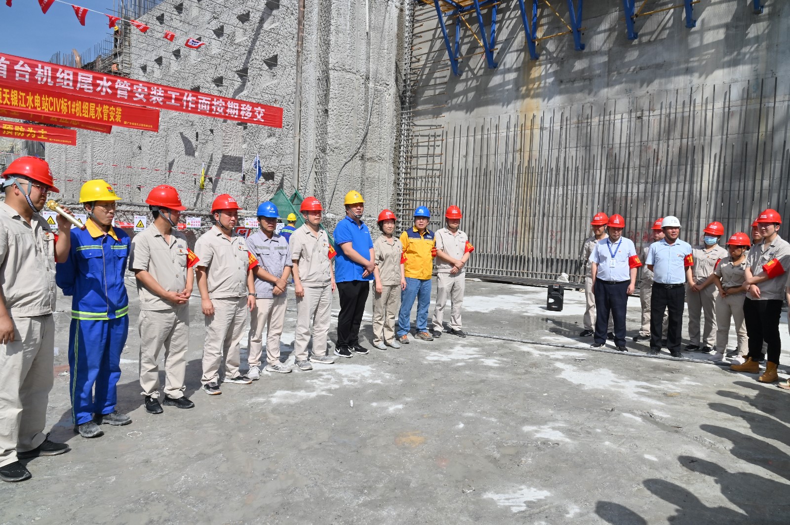 為全力保障2023年各項進度目標順利實現,公司團結帶領各參建單位及哈電廠家群策群力、攻堅克難,認真落實各項工作。成立工作推進指揮部和六個工作小組,由公司班子成員牽頭,公司相關部門、各聯建支部、各參建單位人員參加,緊盯責任分區,狠抓工作落實,確保各部位施工能順利推進,確保物資設備能按時保供。認真梳理工程重難點,優化施工工藝,每日召開工地協調會,將工作任務落實到每日計劃中。堅持現場聯合辦公,從施工組織、人員投入、機具配置、施工方案等方面著手,分析存在的問題并及時協調解決,施工進度處于可控狀態。加強現場管理,每日深入現場檢查,第一時間掌握安全、質量等方面情況,發現問題及時督促整改,做到“重安全、保質量、抓進度”三管齊下。同時,合理調整作業時間,當前攀枝花天氣炎熱,白天室外溫度高達三十多度,施工作業人員極易中暑,公司將作業時間調整為7:00-11:30、15:00-20:00,并做好“送清涼”活動,保障全員以最佳狀態作業施工,推進工程建設。