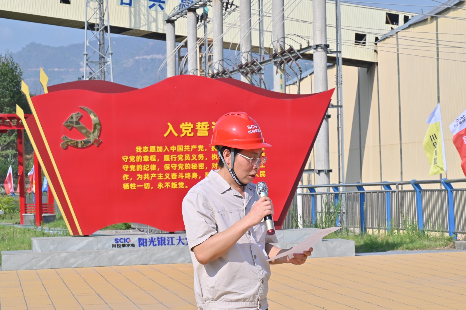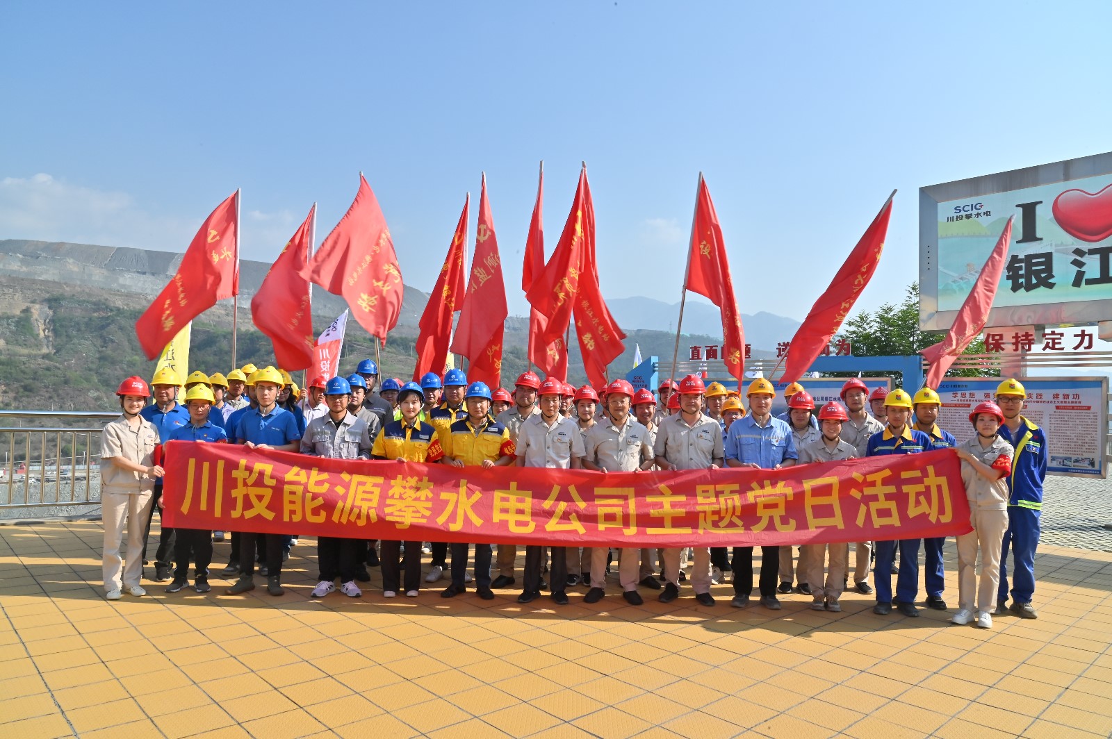 工地現(xiàn)場,在烈日的“考驗”下,川投能源副總經(jīng)理,攀水電公司黨總支書記、董事長徐孝剛作動員講話。他講到,黨的二十大明確提出:要在全社會弘揚勞動精神、奮斗精神、奉獻(xiàn)精神,培育時代新風(fēng)新貌。在黨102歲生日之際,今天我們團(tuán)結(jié)在一起,開展主題黨日活動,傳承黨自力更生、艱苦創(chuàng)業(yè)的紅色基因,弘揚團(tuán)結(jié)協(xié)作、無私奉獻(xiàn)的政治品格,建設(shè)綠色環(huán)保銀江,共建和諧文明工地;希望大家發(fā)揚不怕累、不怕臟、不怕苦的勞動精神,用勤勞的雙手,打造美麗銀江,展現(xiàn)“顏值擔(dān)當(dāng)”。