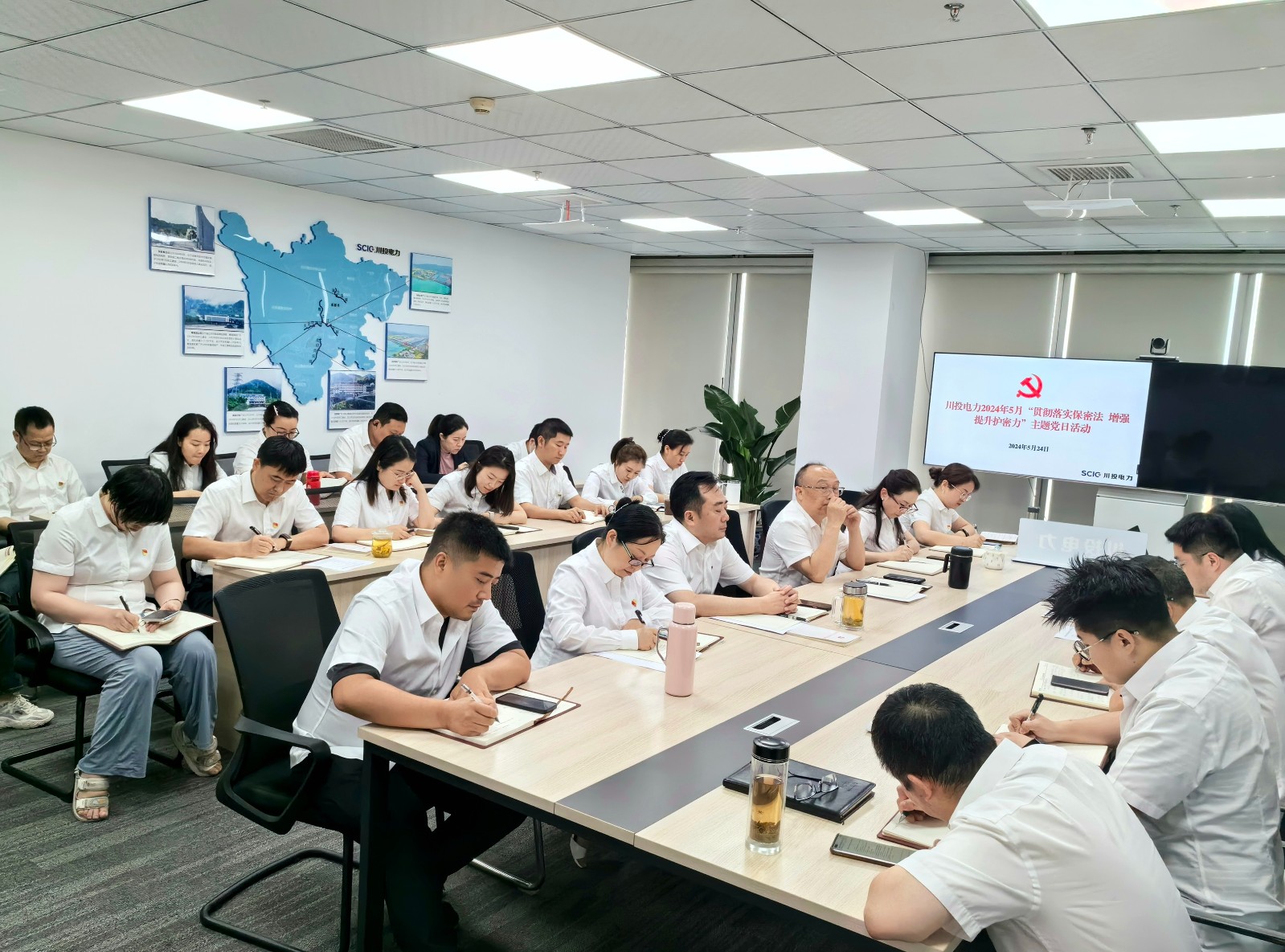 為貫徹落實黨中央關于加強和改進保密工作的決策部署,深入傳達落實習近平總書記就保密工作作出的一系列重要指示批示精神,5月24日,川投電力機關黨支部召開5月“貫徹落實保密法 增強提升護密力”主題黨日活動,并結合黨紀學習教育開展專題學習研討。會議由支部書記李天宏主持,支部全體黨員、入黨積極分子、民主黨派人士參加會議。
