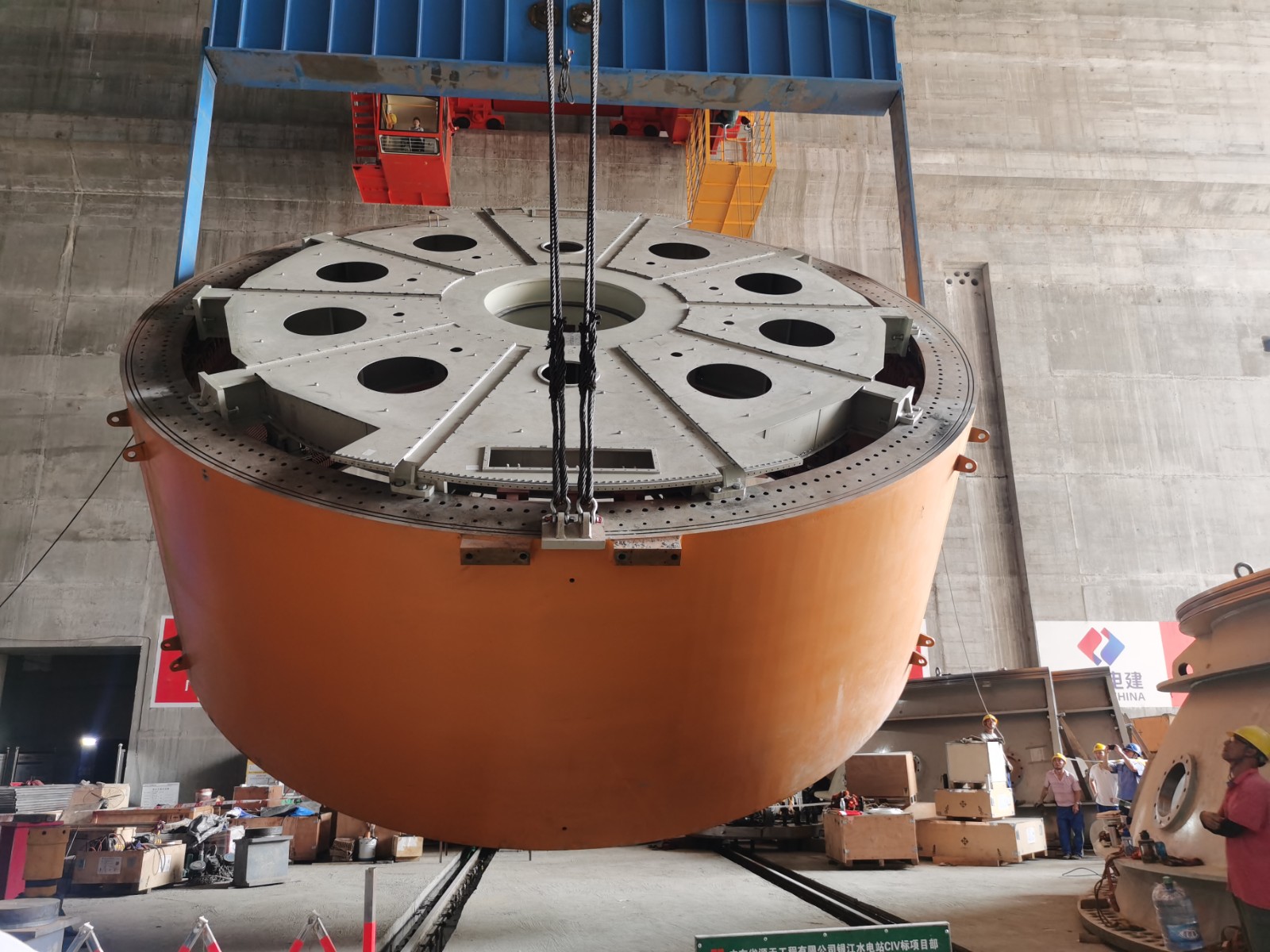 穩(wěn)中求快,加速建設(shè)。在銀江水電站的建設(shè)現(xiàn)場(chǎng),機(jī)器轟鳴,焊花四濺,一片繁忙景象。攀水電公司在確?!胺€(wěn)”的堅(jiān)實(shí)基礎(chǔ)上,積極踐行“快”的要求,以只爭(zhēng)朝夕的緊迫感,全力加快項(xiàng)目建設(shè)進(jìn)度。隨著機(jī)電安裝作業(yè)面的全面鋪開,工期緊、任務(wù)重的挑戰(zhàn)擺在眼前,攀水電公司果斷采取一系列有力措施,加大人員和設(shè)備投入,增加施工班組,延長(zhǎng)作業(yè)時(shí)間,提高工作效率。2024年8月29日下午,在銀江水電站的機(jī)電安裝現(xiàn)場(chǎng),氣氛熱烈而緊張,隨著定子的精準(zhǔn)吊裝到位,標(biāo)志著首臺(tái)機(jī)組安裝取得了重大進(jìn)展。目前銀江水電站首臺(tái)機(jī)組導(dǎo)水機(jī)構(gòu)、主軸、組合軸承、轉(zhuǎn)輪、定子、轉(zhuǎn)子均已安裝就位,為后續(xù)機(jī)組的調(diào)試和投產(chǎn)奠定了堅(jiān)實(shí)的基礎(chǔ)。