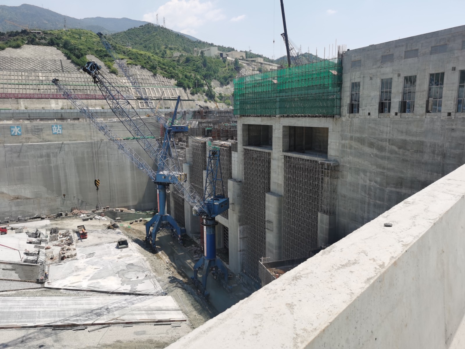 夏末秋初,烈日依然熾熱似火,大地如同蒸籠一般酷熱難耐,而銀江水電站施工現(xiàn)場(chǎng)還是塔吊旋轉(zhuǎn)、車流穿梭、人潮如涌的繁忙建設(shè)景象。銀江建設(shè)者們戰(zhàn)高溫斗酷暑,始終以飽滿的熱情和昂揚(yáng)的斗志,踐行著集團(tuán)公司對(duì)項(xiàng)目建設(shè)提出的“穩(wěn)快并重”四字總方針,工程建設(shè)一直沿著“穩(wěn)中求快、以快促穩(wěn)、穩(wěn)快并重”總基調(diào)在全力以赴地推進(jìn),為最終實(shí)現(xiàn)全面投產(chǎn)發(fā)電目標(biāo)不懈奮斗。
