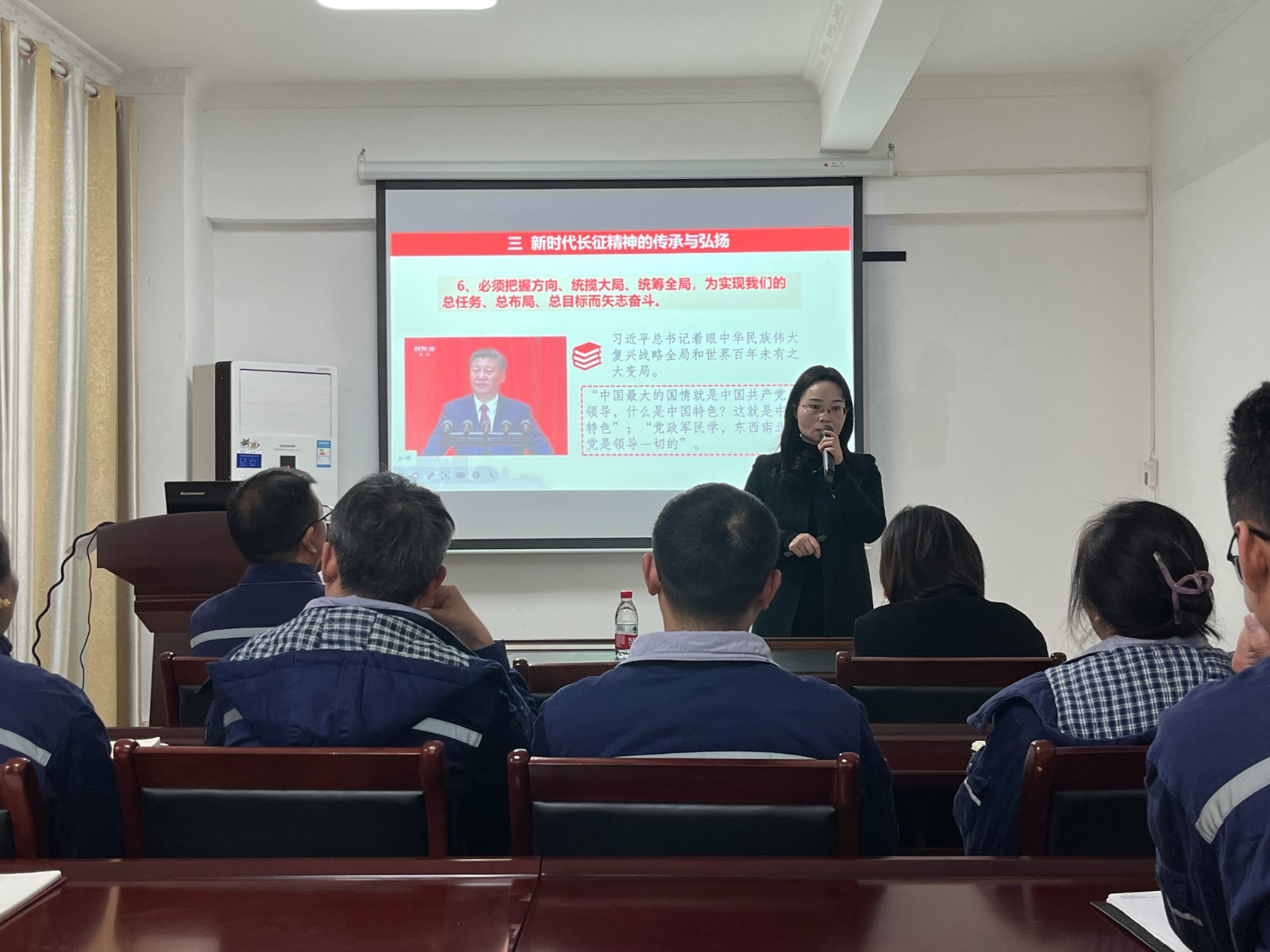 王興蓉以紅軍長征在四川為主線,從長征的基本概況、紅軍長征在四川的光輝歷程、新時代長征精神的傳承與弘揚等多個方面,用大量生動鮮活的案例,結(jié)合國內(nèi)國際現(xiàn)狀,就新時代如何弘揚和傳承長征精神進行深入探討,進一步激發(fā)公司黨員干事創(chuàng)業(yè)的精氣神。