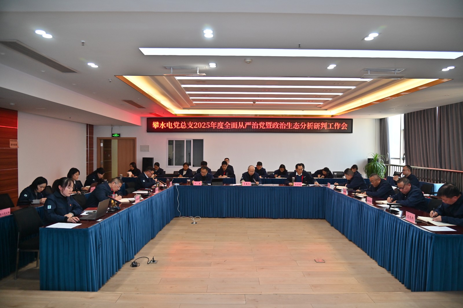 1月13日,攀水電黨總支組織召開2025年度全面從嚴治黨暨政治生態分析研判工作會,會議由公司黨總支委員、紀檢小組長楊銳主持,黨總支副書記(主持黨總支工作)、總經理吳巍嶼出席會議并講話;公司領導班子成員參加會議,全體中層干部、黨員列席會議。
