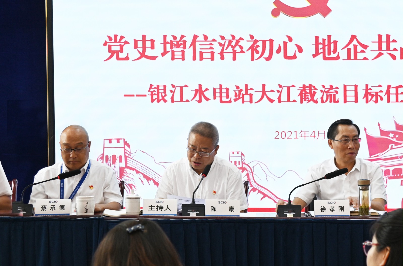 會(huì)議由東區(qū)區(qū)委常委、政法委書記、銀江水電站項(xiàng)目推進(jìn)領(lǐng)導(dǎo)小組常務(wù)副組長陳康主持,川投能源副總經(jīng)理、攀水電公司黨總支書記、董事長徐孝剛,黨總支副書記、總經(jīng)理蔡承德,副總經(jīng)理周軍及公司黨員代表和東區(qū)政府相關(guān)部門等共計(jì)40 余人參會(huì)。