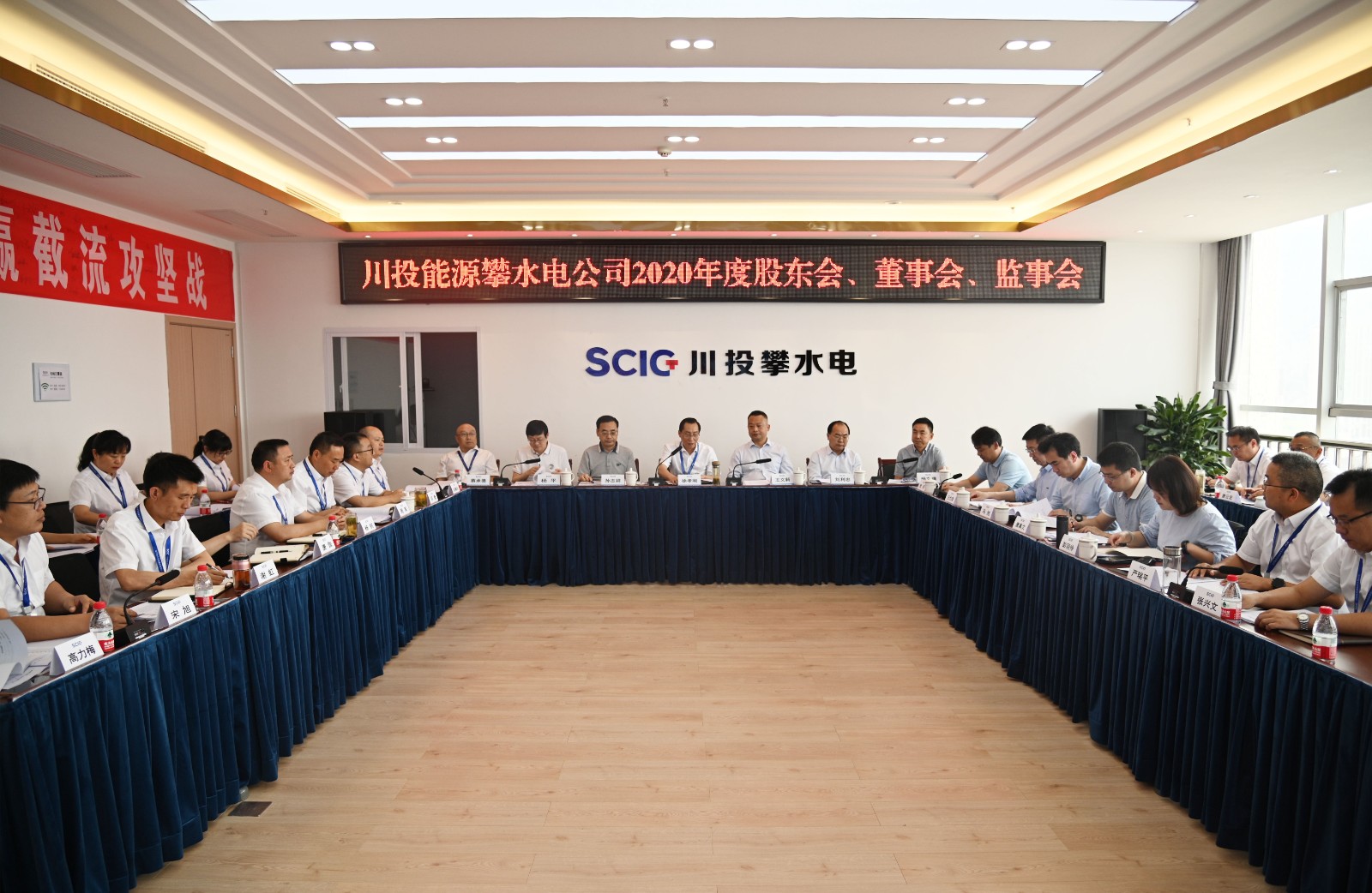 4月27日,川投能源攀水電公司召開第五屆九次董事會、五屆四次監事會和2020年度股東會,川投能源、長江設計院、華潤電力、攀國投四家股東單位代表、董事、監事及相關人員共十余人出席會議。川投能源副總經理、攀水電公司黨總支書記、董事長徐孝剛主持會議。